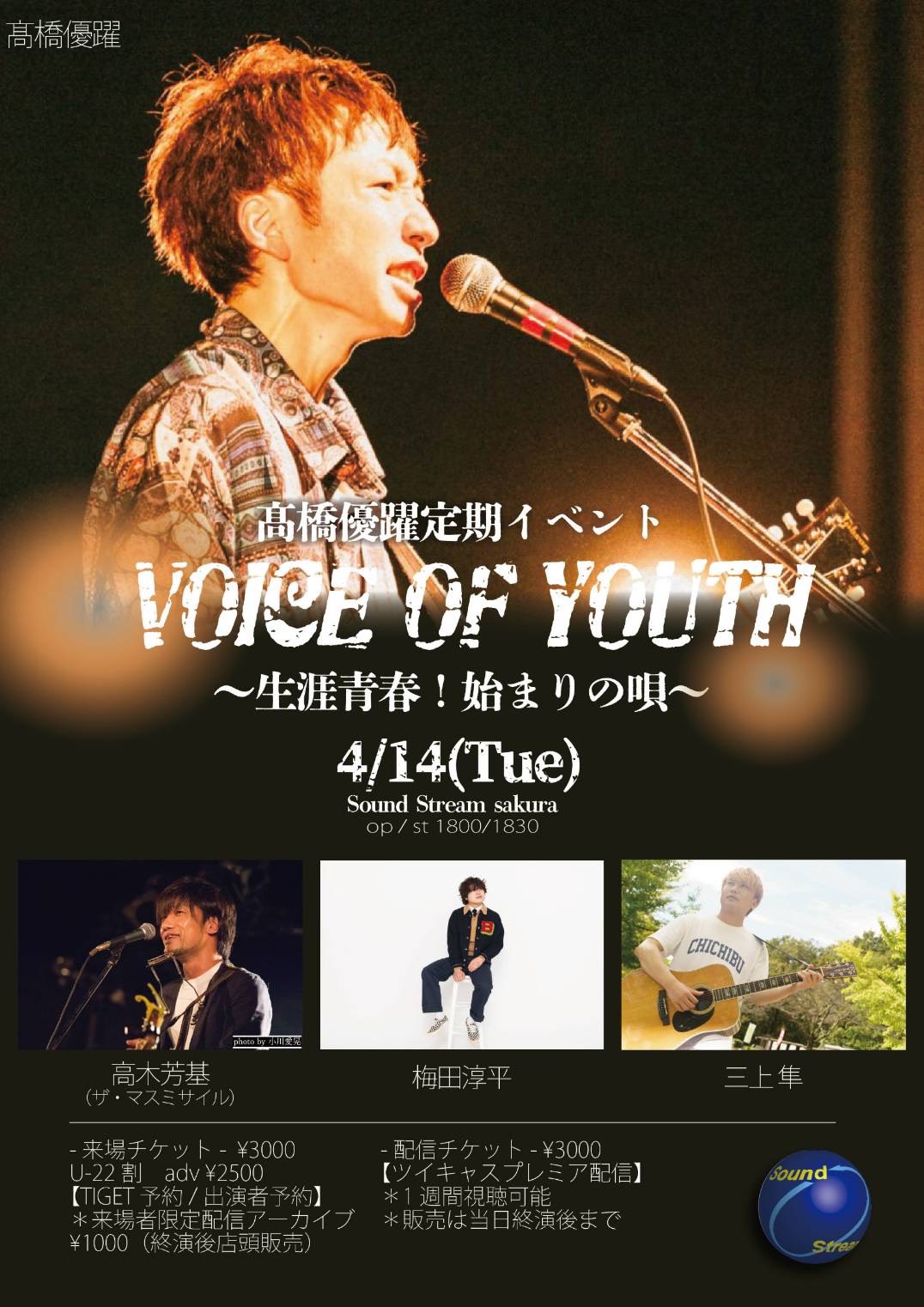 TICKET ¥3,000+(1D) / U-22割 ¥2,500(+1D)